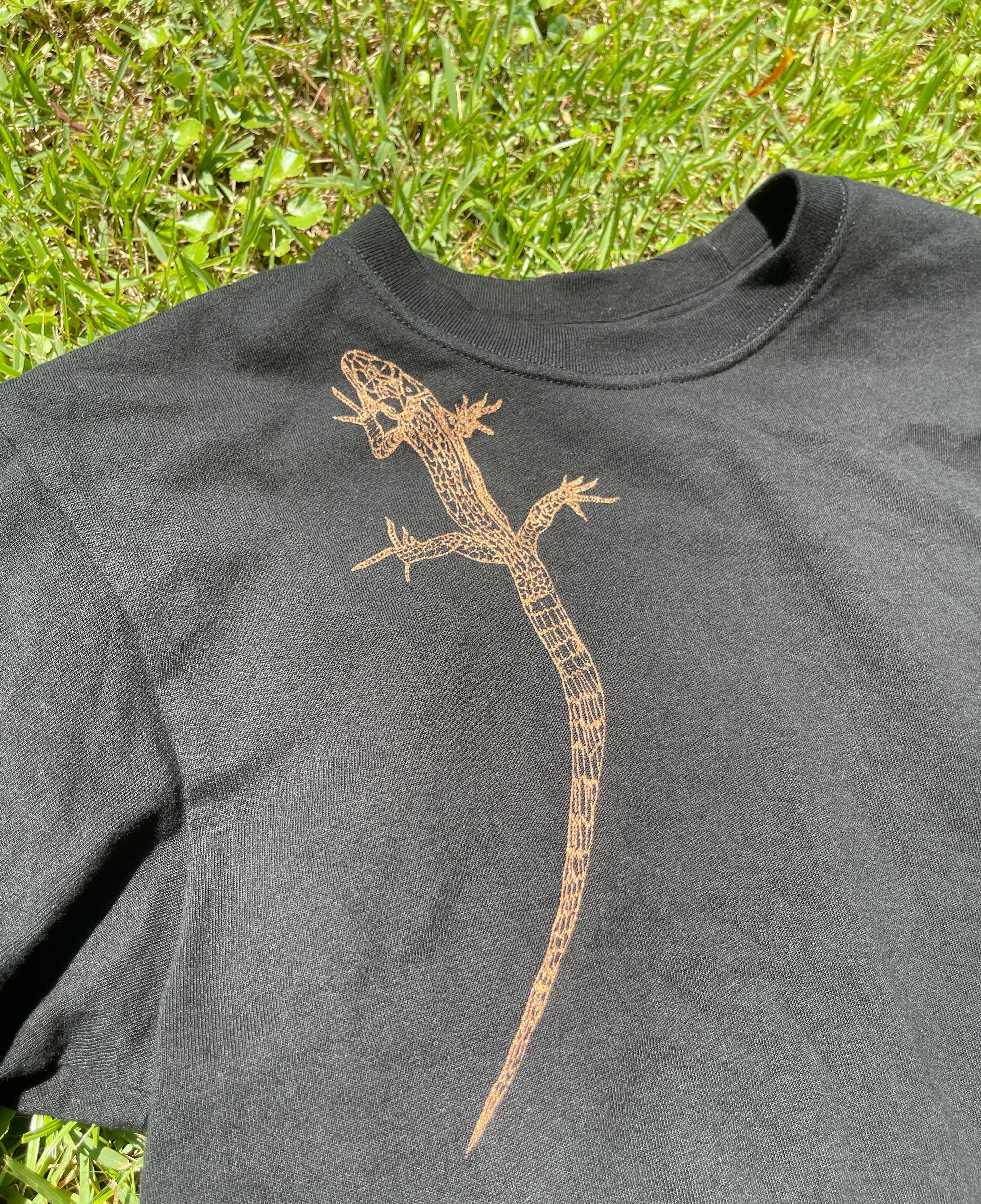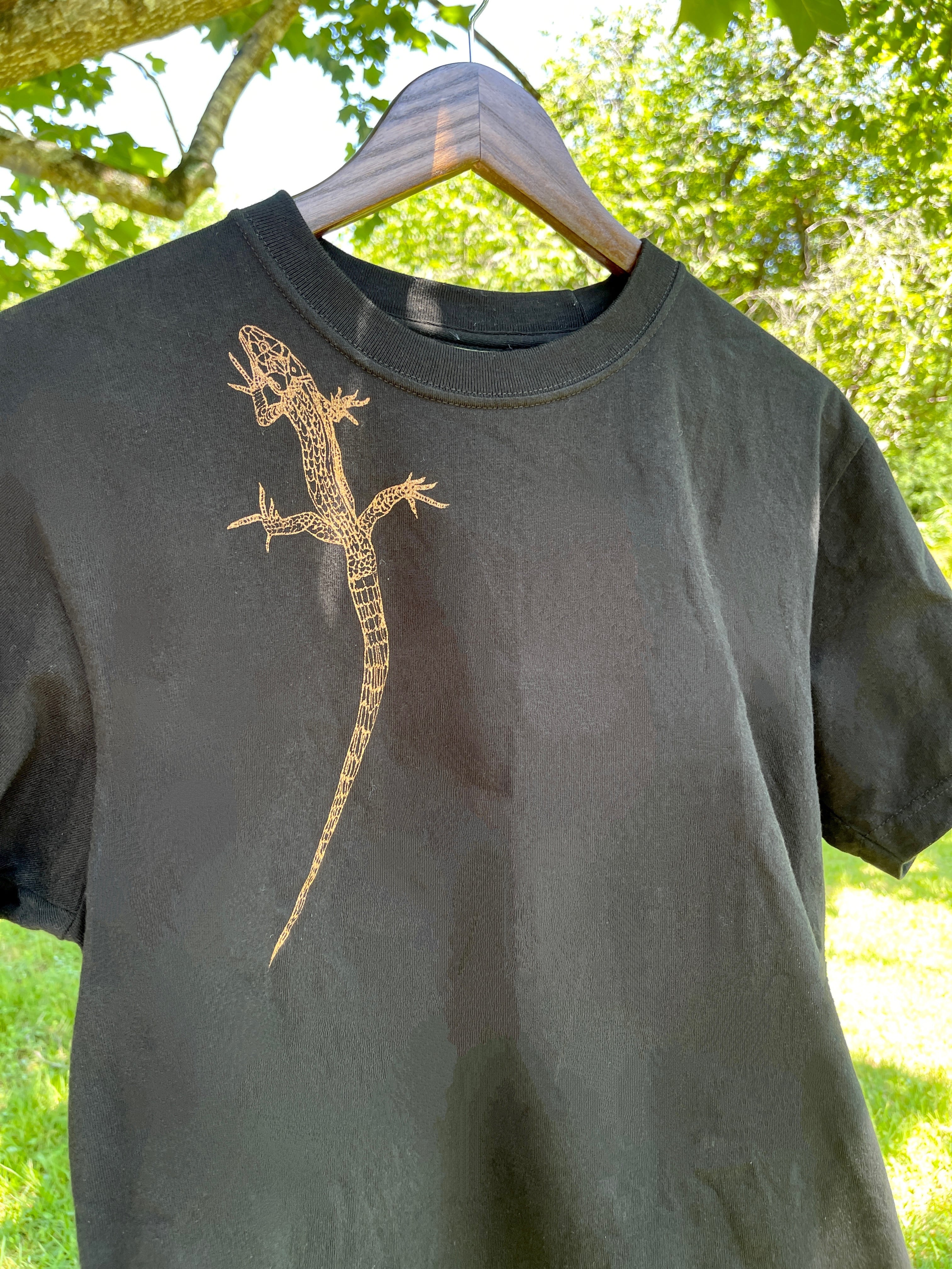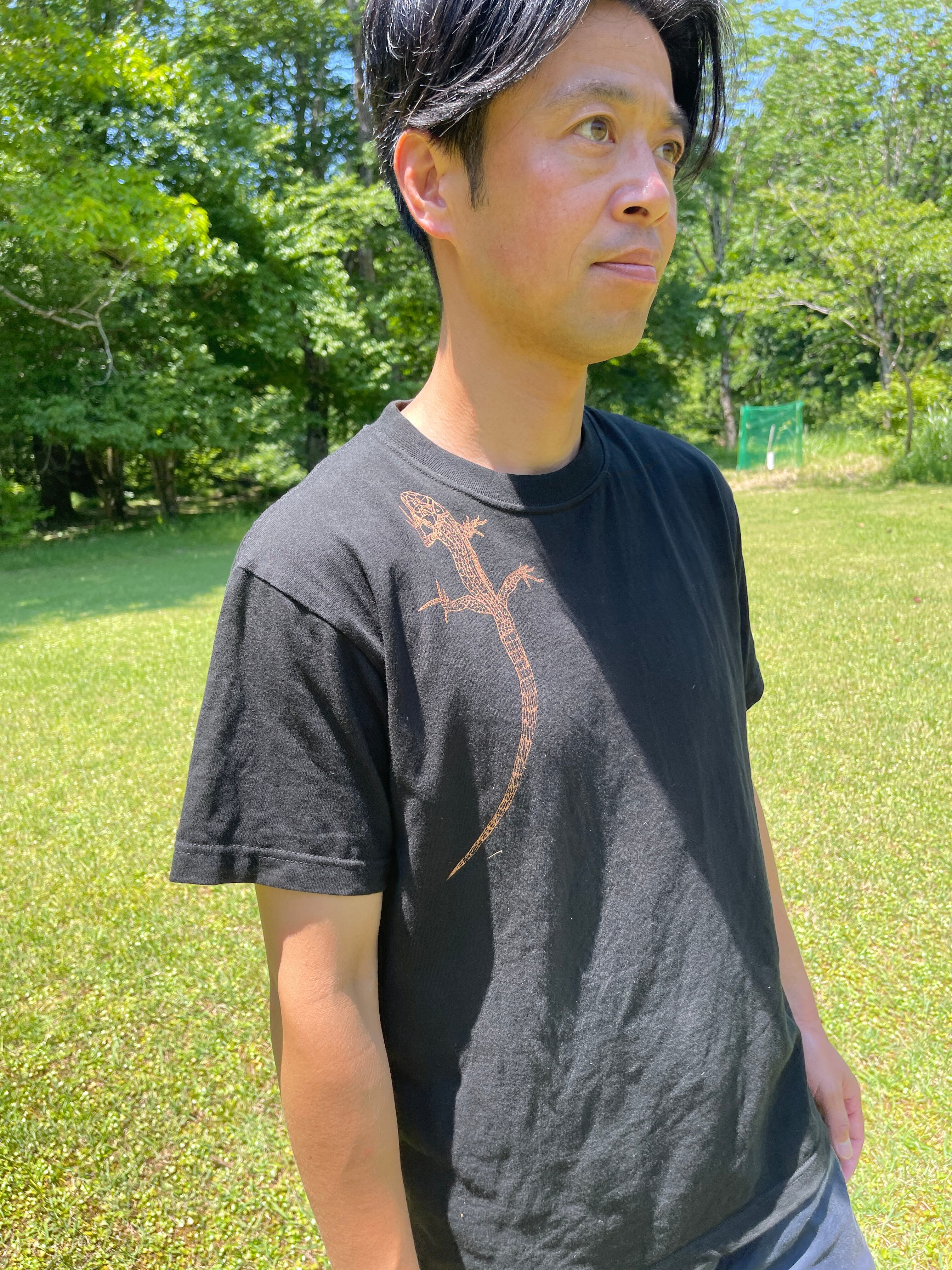【カナヘビが肩まで登ってきたよ半袖Tシャツ】(爬虫類)