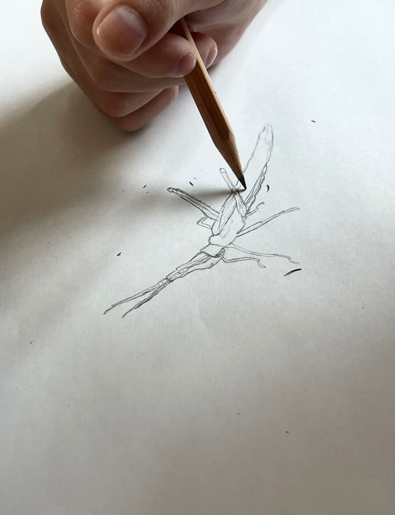 10歳のときにかなへびくんが捕まえた、オオカマキリがモデルになっています。