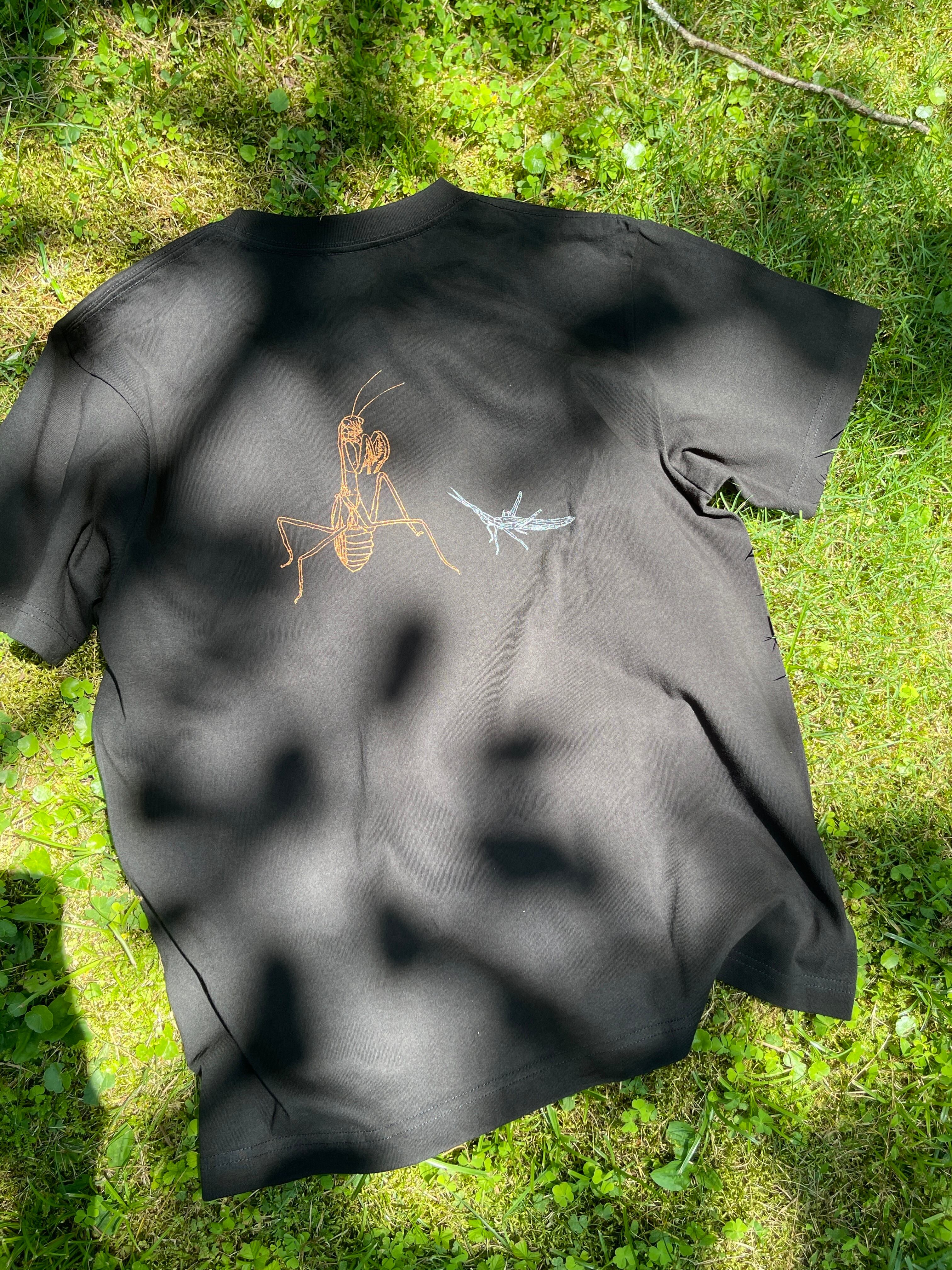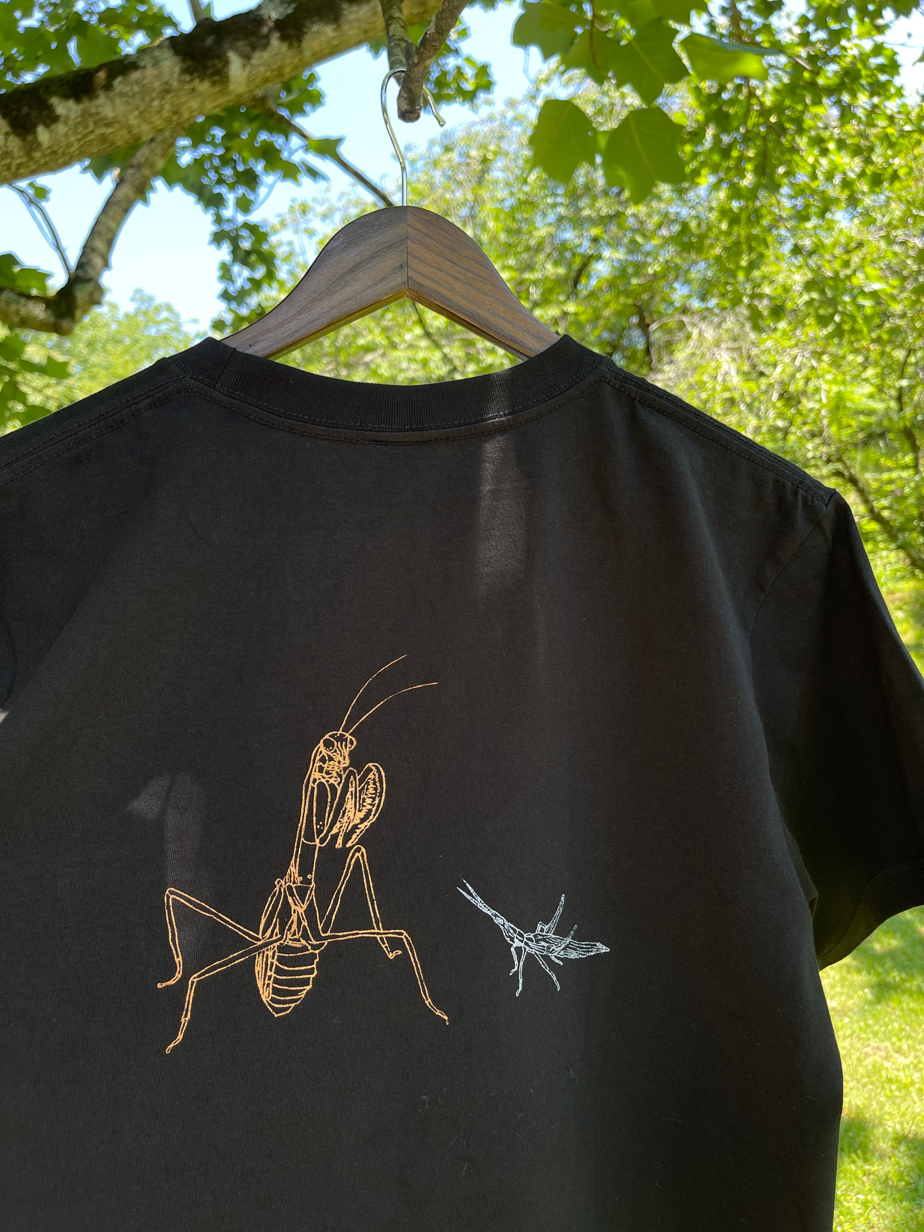 【ぼくの大好きな三角あたまのカマキリ半袖Tシャツ】(昆虫)
