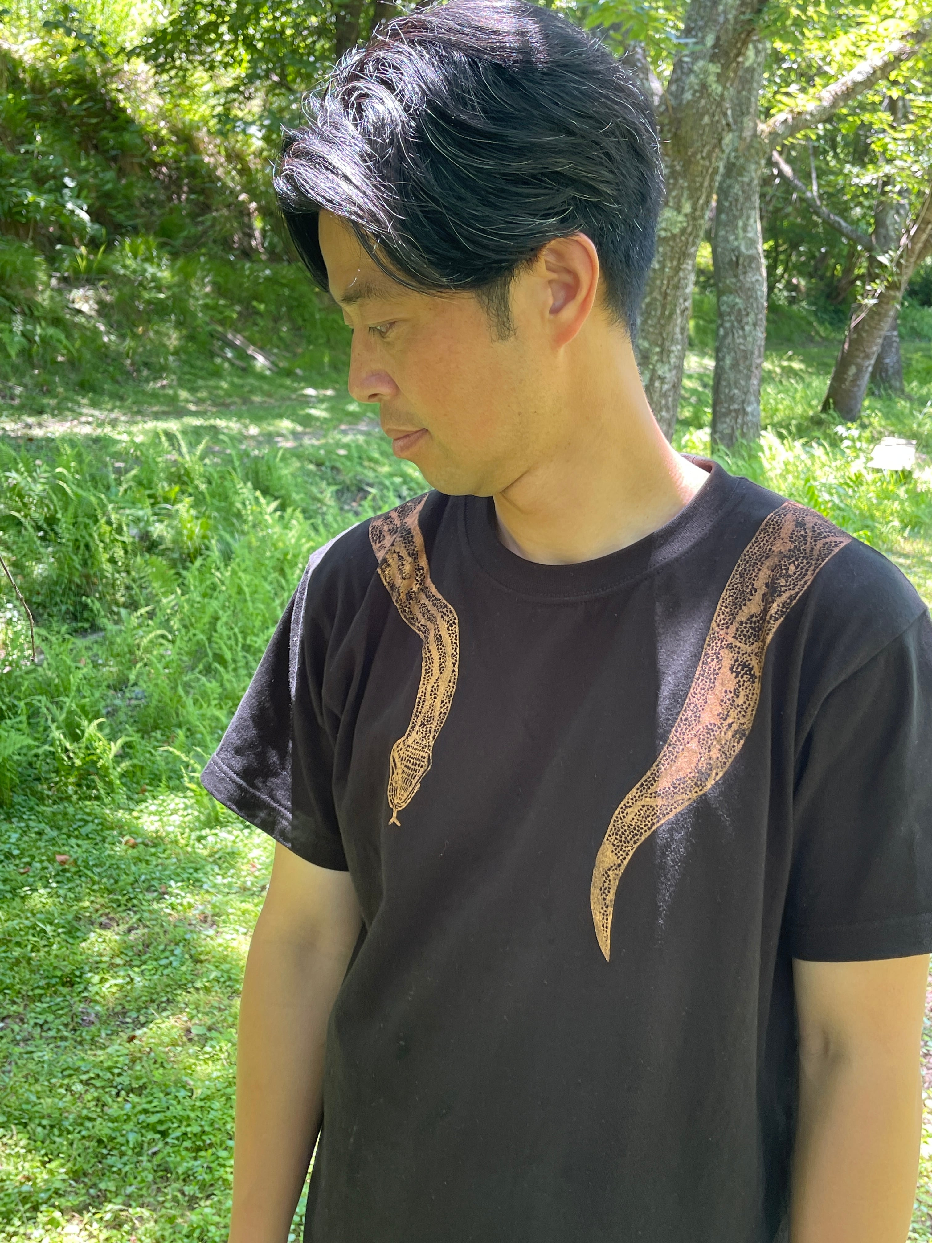 【ぼくがワクワクしながら首に巻いた蛇半袖Tシャツ】(爬虫類)